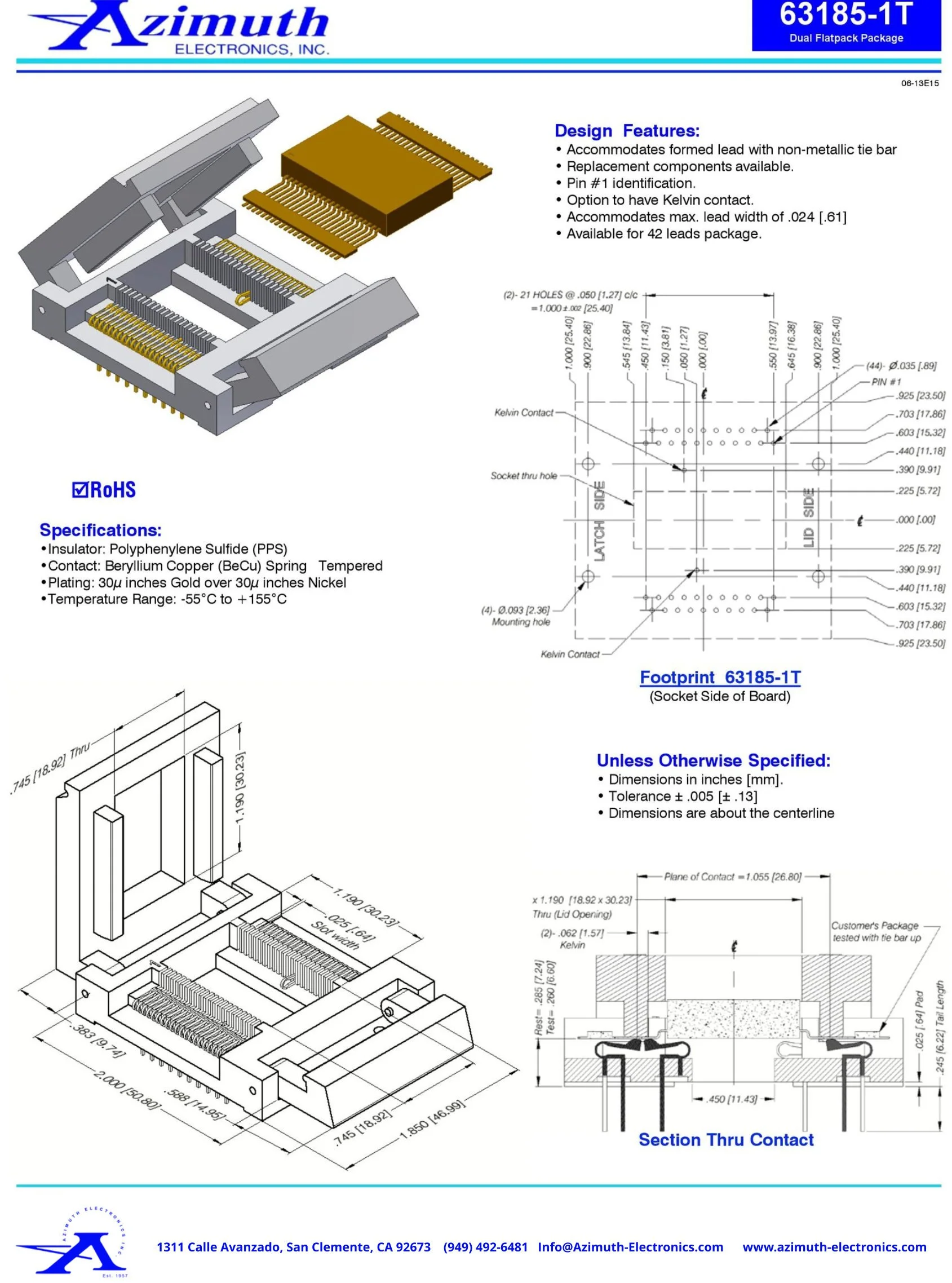 •Plating: 30μ inches Gold over 30μ inches Nickel